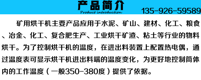礦用烘干機(jī)( 礦用烘干設(shè)備)廣泛用于建材,冶金、選礦、化工、水泥等行業(yè),主要用于礦渣、石灰石、粘土、河沙、石英沙、水渣等濕性大、比重大的的物料。礦渣烘干生產(chǎn)線,主要由回轉(zhuǎn)筒體、引風(fēng)設(shè)備、高速打散設(shè)備、揚(yáng)料板,自清掃裝置、傳動(dòng)裝置,輸送設(shè)備、熱風(fēng)設(shè)備、減速機(jī)、支撐裝置及密封裝置等部件組成。